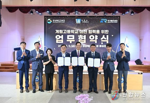 전국연합뉴스 기자 | 경북교육청은 5일 본청 웅비관에서 경주시, 국가철도공단과'계림고등학교 이전 협력을 위한 업무협약'을 체결했다고 밝혔다.