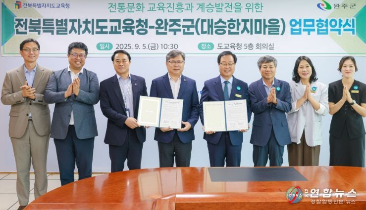 전국연합뉴스 기자 | 전북특별자치도교육청과 완주군이 대승한지마을을 연계한 전통문화 체험 교육 진흥을 위해 손을 맞잡았다.