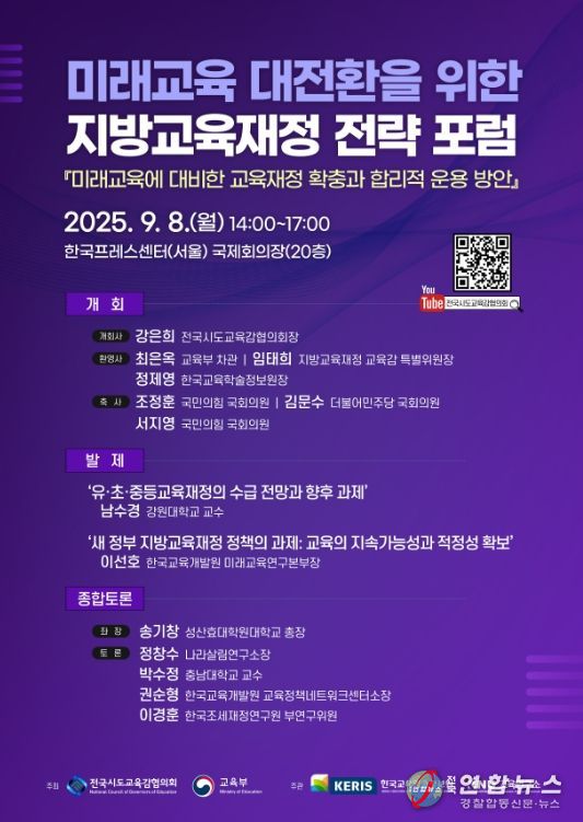이어 “지방교육재정의 안정적 확보는 선택이 아닌 국가의 책임이자 아이들의 권리”라며 “오늘 포럼이 단순한 토론을 넘어 교육재정 안정화를 위한 국가적 의지를 확립하는 출발점이 되기를 바란다”라고 말했다.