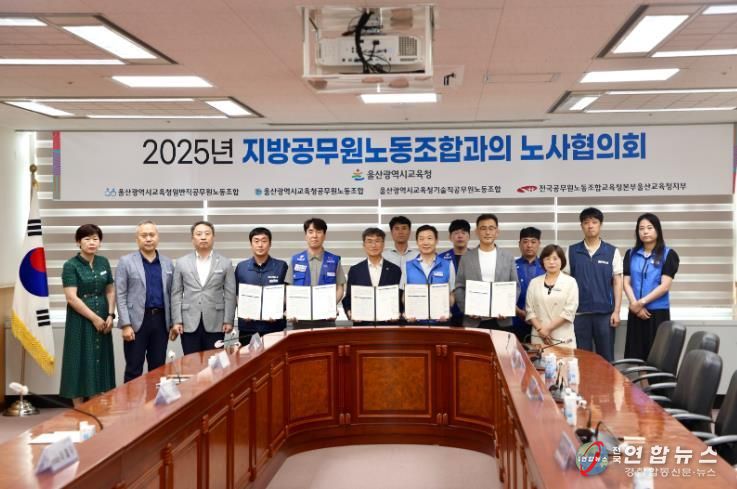 전국연합뉴스 기자 | 울산광역시교육청은 8일 지방공무원노동조합연대 4개 단체와 ‘2025년 상반기 노사협의회 합의문’에 서명했다.