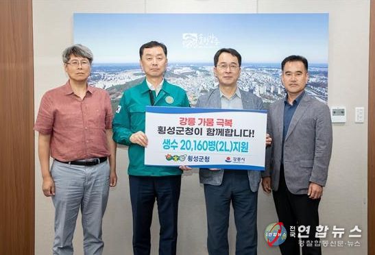 전국연합뉴스 권찬규 기자 | 횡성군은 극심한 가뭄으로 식수난을 겪고 있는 강릉시에 지난 3일, 2ℓ생수 2만 병을 지원했다고 9일 밝혔다.