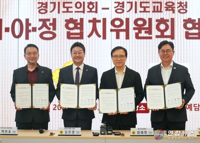협약식에는 임태희 경기도교육감을 비롯한 김진경 의장, 백현종 국민의힘 대표의원, 이용욱 더불어민주당 총괄수석부대표의원 등이 참석해 협약서에 서명하며 위원회의 출범을 공식화했다.
