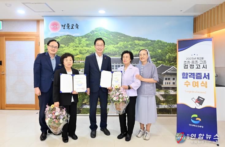 전국연합뉴스 기자 | 경북교육청은 9일 교육감 접견실에서 ‘2025년도 제2회 검정고시 최고령 합격자 합격증서 수여식’을 개최했다.