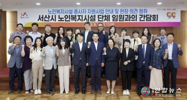 전국연합뉴스 김용태 기자 | 충남 서산시는 지난 9일 시청 중회의실에서 노인복지시설 종사자 처우 개선과 원활한 시설 운영 방안을 논의하기 위해 노인복지시설 단체 임원과 간담회를 개최했다고 밝혔다.