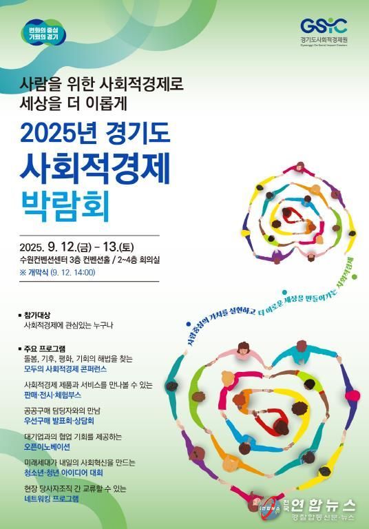 경기도와 경기도사회적경제원은 오는 12~13일 양일간 수원컨벤션센터에서 ‘2025년 경기도사회적경제박람회’를 연다고 10일 밝혔다.
