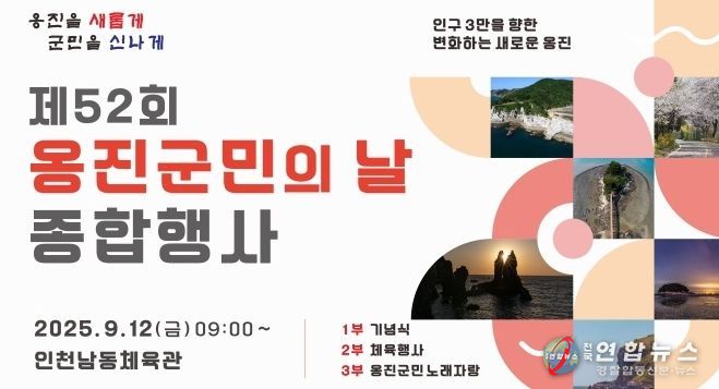 전국연합뉴스 고기남 기자 | 옹진군은 오는 12일에 인천 남동체육관에서 ‘제52회 옹진군민의 날 기념 종합행사’를 개최한다고 밝혔다.