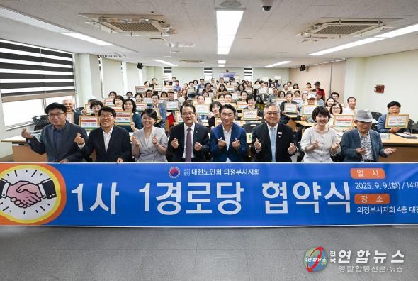 전국연합뉴스 박점규 기자 | 의정부시는 9월 9일 대한노인회 의정부시지회가 ‘1사1경로당 협약식’을 열고, 39개 후원사와 39개 경로당 간 지원 협약을 체결했다고 밝혔다.