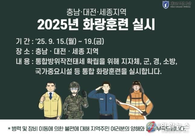 전국연합뉴스 김용태 기자 | 아산시는 오는 9월 15일부터 19일까지 ‘2025 화랑훈련’을 실시한다고 밝혔다.