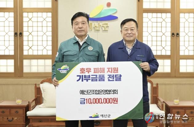 전국연합뉴스 김용태 기자 | 예산군은 지난 9일 오후 2시 군청 상황실에서 예산군조합운영협의회가 집중호우 피해 복구 지원을 위해 성금 1000만원을 기탁했다고 밝혔다.