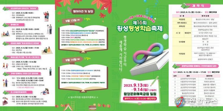 전국연합뉴스 권찬규 기자 | 횡성군은 오는 9월 13일부터 14일까지 이틀간 횡성문화체육공원에서 ‘제16회 횡성평생학습축제’를 개최한다.