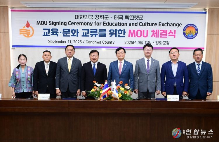 전국연합뉴스 고기남 기자 | 강화군은 지난 11일 태국 논타부리주 빡끄렛군(시장 위차이 반다삭)과 교육·문화 교류 협력을 위한 양해각서(MOU)를 체결했다.