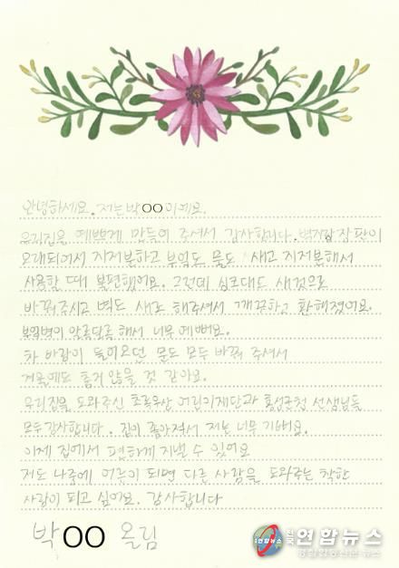 특히, 감사의 마음을 담아 전한 손편지에는 “싱크대도 새것으로 바꿔주시고 벽도 새로 해주셔서 깨끗하고 환해졌어요. 찬바람이 들어오던 문도 모두 바꿔 주셔서 겨울에도 춥지 않을 것 같아요. 우리집을 도와주신 초록우산어린이재단과 홍성군청 선생님들 모두 감사합니다”라는 진심 어린 소감이 담겨 있어 큰 감동을 주고 있다.