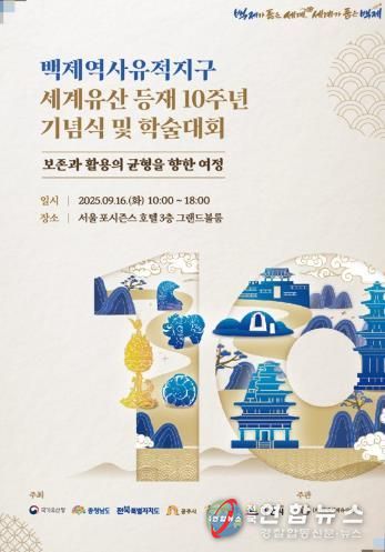 전국연합뉴스 김용태 기자 | 부여군과 (재)백제세계유산센터는 오는 9월 16일 서울 포시즌스 호텔에서 ‘백제역사유적지구 세계유산 등재 10주년 기념식 및 학술대회’를 개최한다고 밝혔다.