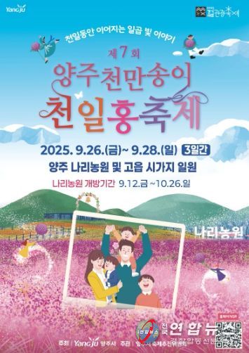 특히 ‘양주 천만송이 천일홍 축제’는 2025년 경기대표관광축제에 선정된 행사로 전국 최대 규모의 천일홍 군락지에서 보랏빛 꽃물결이 끝없이 이어지는 장관을 감상할 수 있다.