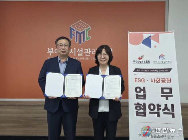 전국연합뉴스 김용태 기자 | 부여군시설관리공단은 대한산업보건협회와 ESG 경영 및 사회공헌 활동 강화를 위한 업무협약(MOU)을 체결했다고 16일 밝혔다.