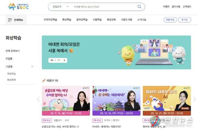 시흥교육캠퍼스 쏙(SSOC)에서 운영 중인 AI 화상학습 시리즈는 매회 300여 명이 신청하고 실시간으로 참여할 정도로 큰 호응을 얻고 있다. 스피치, 노션, 책쓰기 등 전문 분야 화상 강좌 역시 비슷한 수준의 신청과 참여가 이어지며 꾸준한 인기를 끌고 있어, 시민들의 다양한 학습 수요를 충실히 반영하고 있다.