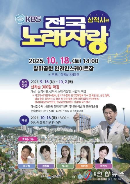전국연합뉴스 권찬규 기자 | 삼척시는 11년 만에 전국민의 사랑을 받는 인기 프로그램 ‘KBS 전국노래자랑’을 개최한다.