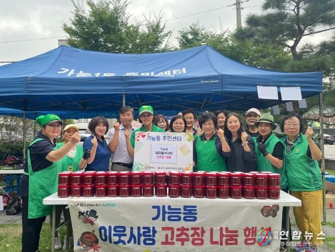 전국연합뉴스 박점규 기자 | 의정부시 가능동주민센터는 9월 16일 가능동 새마을부녀회가 직접 만든 고추장 70통을 관내 저소득 가구와 독거 어르신들을 위해 기탁했다고 밝혔다.