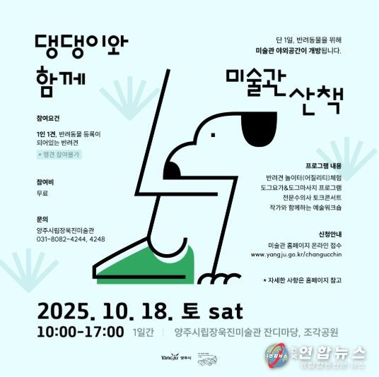 전국연합뉴스 박점규 기자 | 양주시립장욱진미술관은 오는 10월 18일, 반려견과 함께하는 특별 프로그램 '댕댕이와 함께 미술관 산책'을 개최한다.