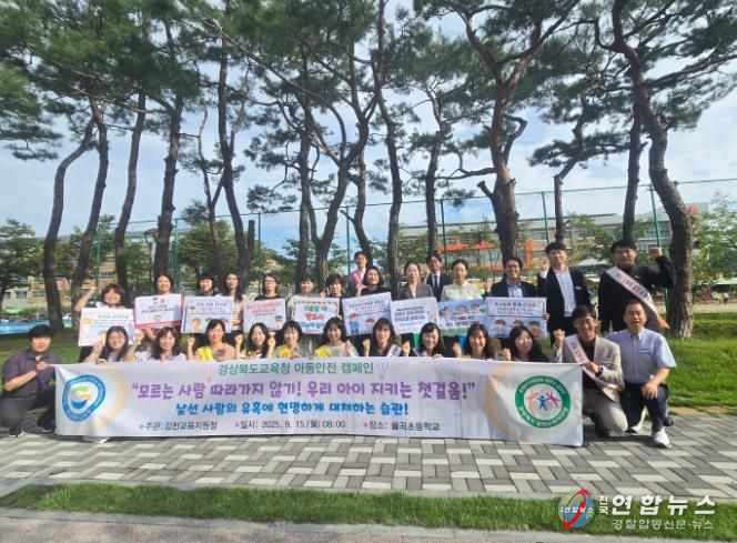 전국연합뉴스 기자 | 김천교육지원청은 2025년 9월 15일 월요일 오전 8시부터 율곡초등학교에서 '안전한 등굣길 조성을 위한 범죄 예방 캠페인'을 진행했다.