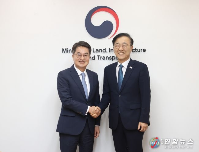 전국연합뉴스 기자 | 김동연 경기도지사가 김윤덕 국토교통부 장관을 만나 ①서울-양평 고속도로 원안 조속 추진 ②수도권 철도망 구축 ③주한미군 반환공여구역 개발 활성화 지원 ④1기 신도시 정비사업 신속추진 지원 등 4대 현안에 대한 협조를 요청했다. 김 장관은 “반드시 살펴보겠다”고 화답했다.