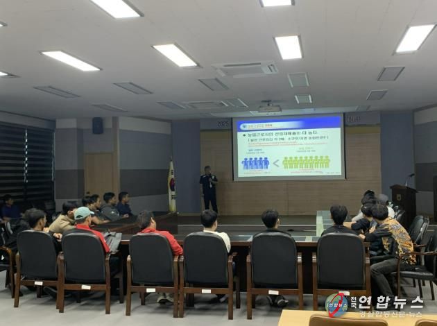 전국연합뉴스 김용태 기자 | 홍성군 농업기술센터가 외국인 계절근로자의 농작업 안전의식 향상 및 작업 환경 개선을 위해 지난 17일 홍동농협과 협력하여 계절근로자 20명을 대상으로 농작업 안전교육을 진행했다.