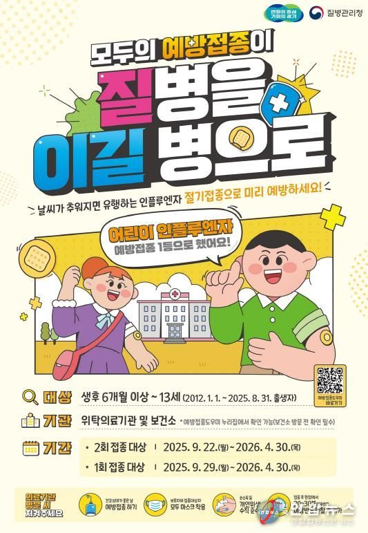 인플루엔자는 2회 접종 대상 어린이를 시작으로 9월 22일부터 실시한다. 이후 9월 29일부터는 1회 접종 대상 어린이와 임신부, 10월 15일부터는 75세 이상 어르신부터 연령대별로 순차 접종이 가능하다.
