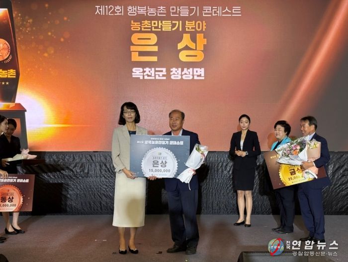 전국연합뉴스 이동수 기자 | 옥천군 청성면이 지난 17일 과천 한국마사회 경마공원에서 열린 농림축산식품부 주최 ‘제12회 행복농촌만들기 콘테스트’에서 농촌만들기 분야 장관상(은상)을 차지해 상금 15,000만 원을 받았다.
