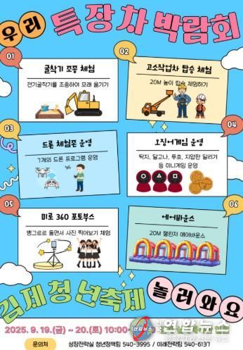 또한, 김제 특화 산업인 특장차를 활용한‘제3회 미래 특장차산업 박람회’도 연계 추진해 아이들과 청소년이 실제 특장차와 관련한 직업 세계를 경험하고, 지역 산업의 비전과 가능성에 공감하며 미래에 대한 꿈을 설계할 수 있는 기회를 제공할 계획이다.