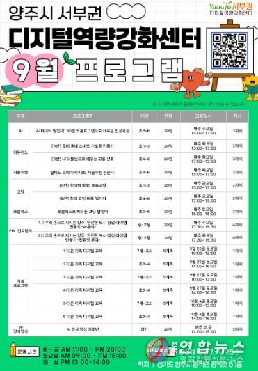센터에서는 ▲아두이노를 활용한 스마트 가로등 만들기 ▲로블록스로 배우는 코딩탐험대 등 초등학생 눈높이에 맞춘 창의융합형 프로그램을 운영한다. 또한 성인을 위한 AI 강사 양성과정 등 연령별 맞춤 프로그램도 마련해 남녀노소 누구나 디지털 학습에 참여할 수 있도록 했다.