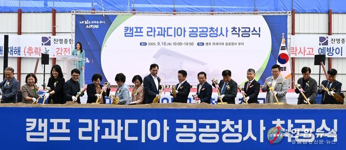 시는 9월 18일 의정부동 333-11번지 일원에서 김동근 시장을 비롯해 이재강 국회의원, 김연균 시의회 의장, 지역 도‧시의원과 시민 등 200여 명이 참석한 가운데 ‘캠프 라과디아 도시개발사업 공공청사 착공식’을 개최했다.