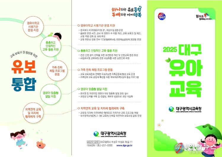 홍보 부스에서는 북구 거주 영유아 가족을 대상으로 ▲지속가능한 가족공동체 형성 교육, ▲유아 문해력 교육, ▲영유아학교 시범 운영, ▲영유아 숲놀이 운영 등 대구시교육청의 유아교육과 유보통합 정책을 안내한다.