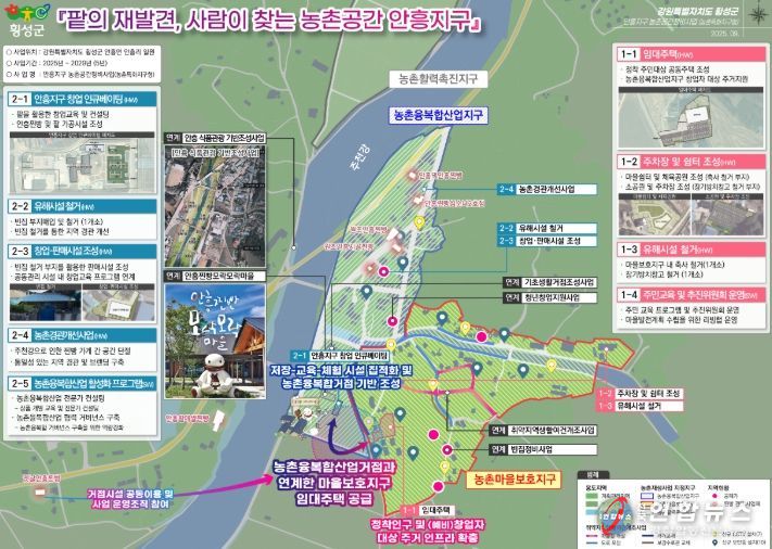 전국연합뉴스 신승국 기자 | 횡성군이 농촌공간 재구조화 및 재생을 위해 농림축산식품부가 추진한 ‘2025년 농촌공간정비사업(농촌특화지구형) 공모’사업에 선정되어 100억원의 사업비를 확보했다.