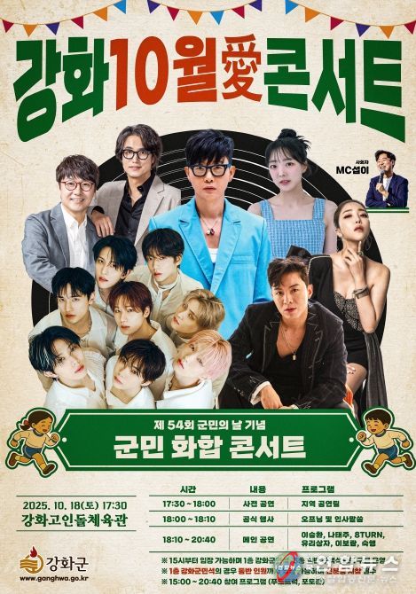 전국연합뉴스 고기남 기자 | 강화군은 오는 10월 18일 오후 5시 30분, 강화고인돌체육관에서 ‘2025 강화 10월애(愛) 콘서트’를 개최한다고 밝혔다.