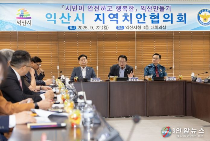 전국연합뉴스 최성용 기자 | 익산시는 22일 익산시의회와 익산경찰서를 비롯한 지역 주요 기관·단체장과 언론기관장, 시민단체장이 참석한 가운데 '2025년 하반기 지역치안협의회 정기회의'를 개최했다.