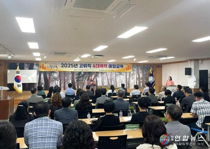 전국연합뉴스 기자 | 경상북도울진교육지원청은 2025년 9월 22일, 3층 대회의실에서 고위직 대상 4대폭력(성희롱, 성폭력, 성매매, 가정폭력) 예방교육을 시행했다.