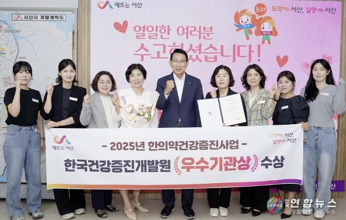 전국연합뉴스 김용태 기자 | 충남 서산시는 보건복지부와 한국건강증진개발원이 주관한 ‘2025년 한의약 건강증진사업 성과대회’에서 우수기관으로 선정됐다고 밝혔다.