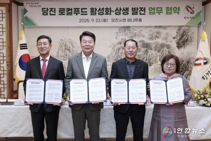 전국연합뉴스 김용태 기자 | 당진시는 지난 22일 당진시청 해나루홀에서 더로컬농업회사법인(주), 당진축협, 당진로컬푸드협동조합과 지역 로컬푸드 활성화를 위한 업무협약(MOU)을 체결했다고 23일 밝혔다.