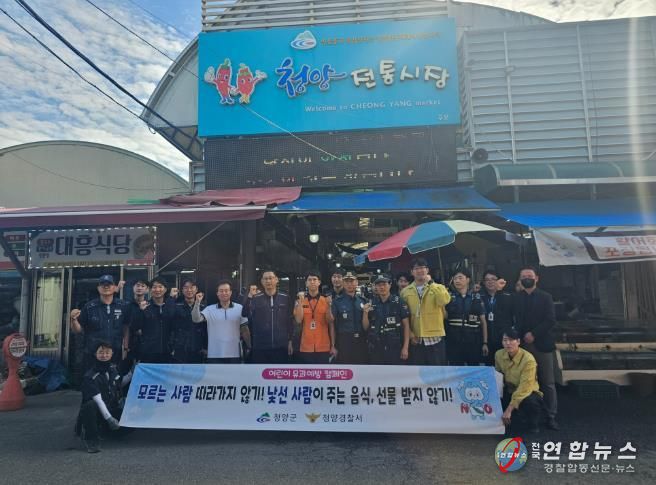 전국연합뉴스 김용태 기자 | 청양군은 지난 23일 청양시장 일원에서 어린이 유괴 예방을 위한 안전문화 캠페인을 전개했다.
