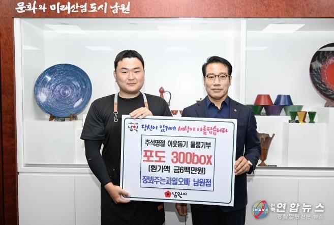 최경식 남원시장은 “장봐주는과일오빠 남원점이 추석 명절을 맞아 취약계층을 위한 기부를 이어가고 있는 점에 깊은 감사의 말씀을 드린다”라면서 “이와 같은 상생 정신은 남원의 복지 향상에 큰 도움이 되고 있다. 앞으로도 지역 경제와 사회의 발전을 위해 함께 협력해 나가기를 바란다”라고 전했다.