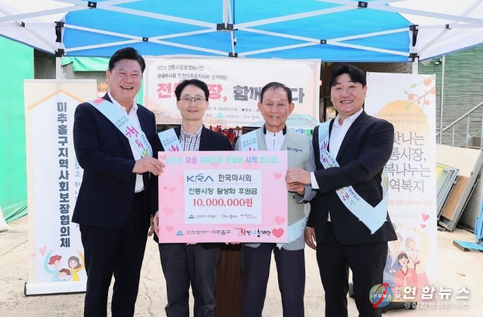 이번 기부는 전통시장 활성화 사업의 일환으로 마련됐으며, 한국마사회 인천미추홀지사가 후원하고 (사)학산나눔재단이 주최했다.