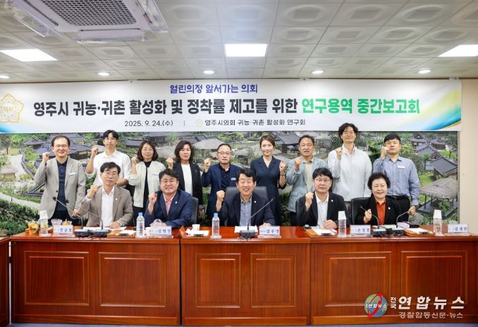 전국연합뉴스 김삿갓 기자 | 영주시의회 의원연구단체인‘귀농·귀촌 활성화 및 정착률 제고를 위한 방안 연구회’(대표의원 김주영)는 9월 24일 영주시의회 소회의실에서 연구용역 중간보고회를 열고, 귀농·귀촌인의 안정적 정착을 위한 정책 대안을 모색했다.