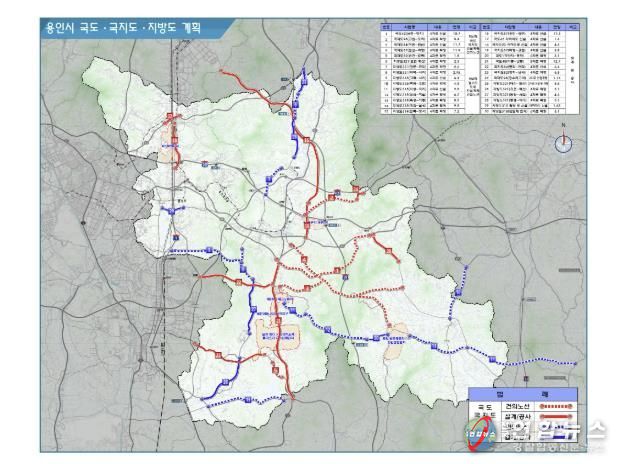 현재 용인시에서는 국도 3곳, 국지도 5곳, 지방도 6곳 등 총 14개 노선에서 도로 건설과 확장 사업이 추진되고 있다.