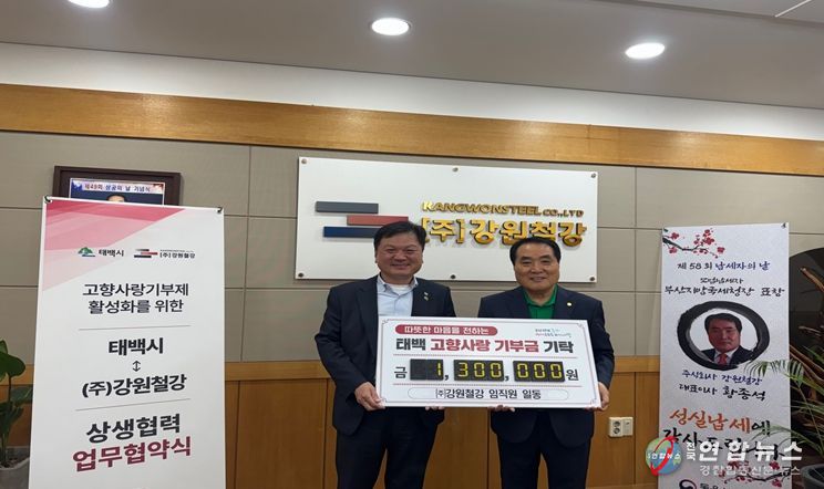 전국연합뉴스 권찬규 기자 | 태백시는 9월 25일 ㈜강원철강 회의실에서 고향사랑기부제 활성화를 위한 업무협약식을 개최했다고 밝혔다.