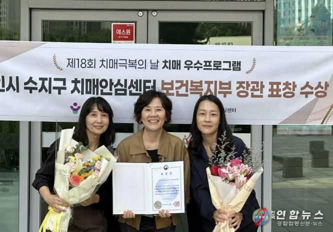 전국연합뉴스 박남호 기자 | 용인특례시 수지구보건소 치매안심센터가 지난 25일 경기도 인재개발원에서 열린 ‘제18회 치매극복의 날’ 기념식에서 치매 우수프로그램 운영기관으로 선정돼 보건복지부 장관 표창을 받았다고 26일 밝혔다.