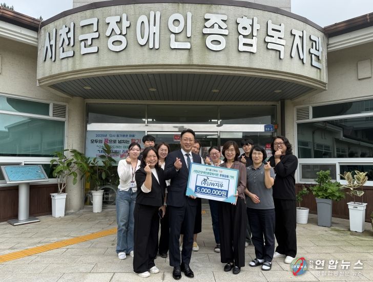전국연합뉴스 김대환 기자 | ㈜제이더블유지우(대표이사 방현우)는 25일 서천군장애인종합복지관에 장애인을 위한 후원금을 기탁했다.