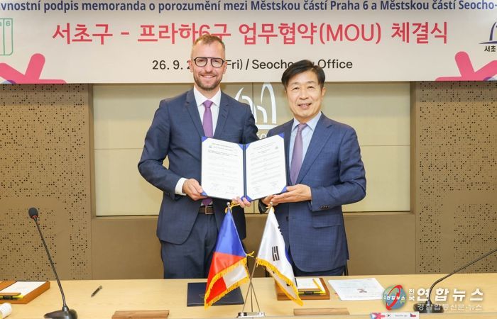 전국연합뉴스 김태연 기자 | 서울 서초구는 지난 26일 구청 5층 대회의실에서 체코 프라하 6구와 문화, 예술, 교육 분야 등 상호 교류 우호증진을 위한 우호도시협정 양해각서(MOU)를 체결했다고 밝혔다.