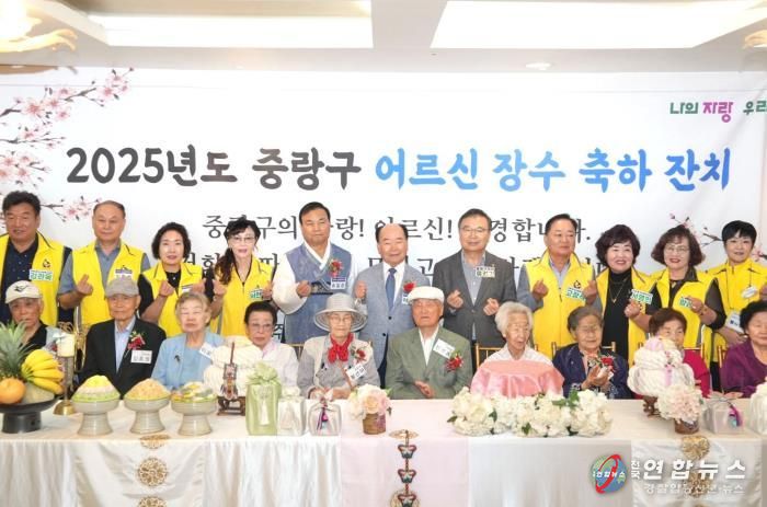 전국연합뉴스 김재업 기자 | 중랑구는 지난 9월 26일, 중랑구 효사랑봉사회 주관으로 ‘2025년 중랑구 어르신 장수 축하 잔치’를 열고 동별 최고령 어르신과 가족들을 초청해 감사의 마음을 전하는 뜻깊은 시간을 가졌다.