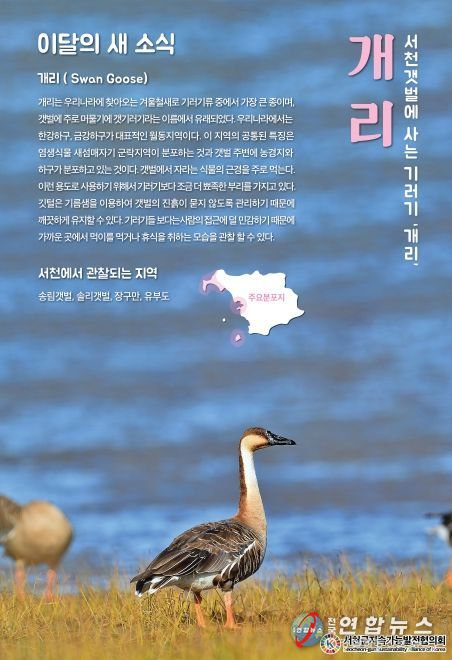 전국연합뉴스 김대환 기자 | 서천군지속가능발전협의회(대표회장 신상애, 이하 서천지속협)는 2025년 10월 ‘이달의 새’로 멸종위기 철새 개리(Anser cygnoides)를 선정했다고 29일 밝혔다.