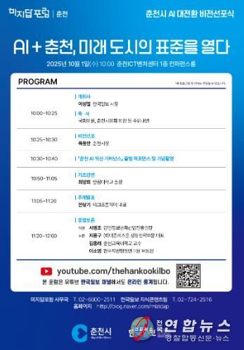 육동한 춘천시장은 “AI는 이미 도시의 미래를 바꾸는 핵심 동력”이라며 “이번 비전 선포식은 시민이 체감하는 AI 정책을 통해 춘천이 전국 최고의 AI 선도도시로 나아가는 출발점이 될 것”이라고 말했다. 이어 “춘천 AI 혁신 거버넌스와 시민이 함께 만들어갈 번영의 미래를 그려가겠다”고 강조했다.